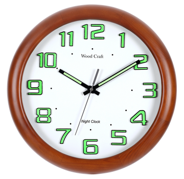 Wooden Wall Clocks with radium night glow dials that glow in the dark after exposure to light